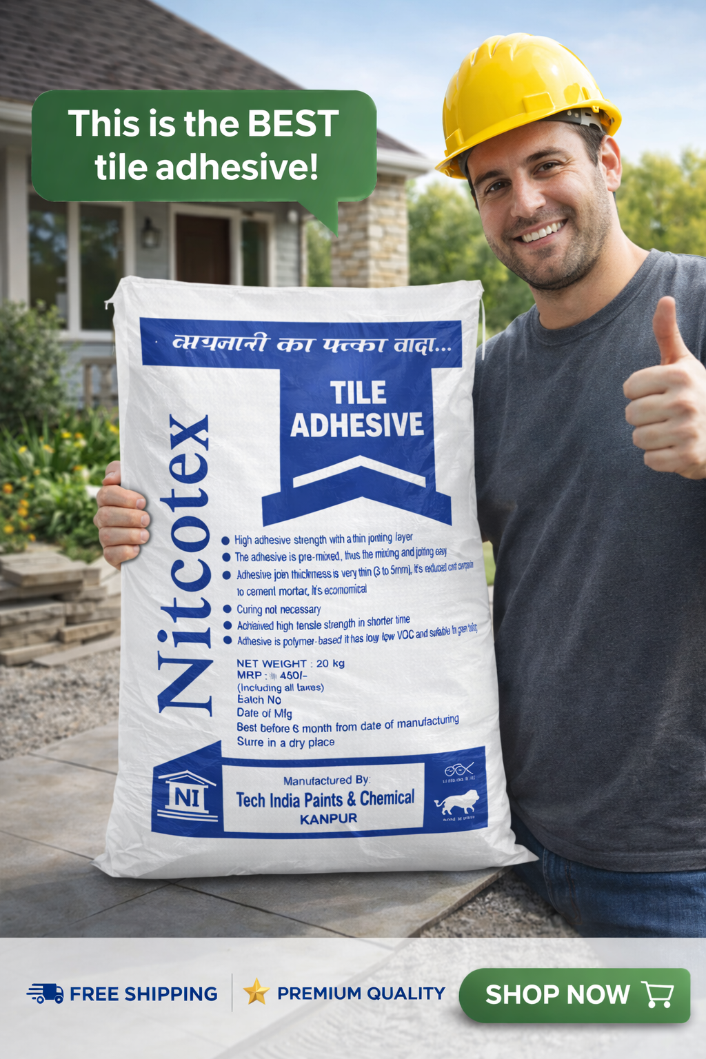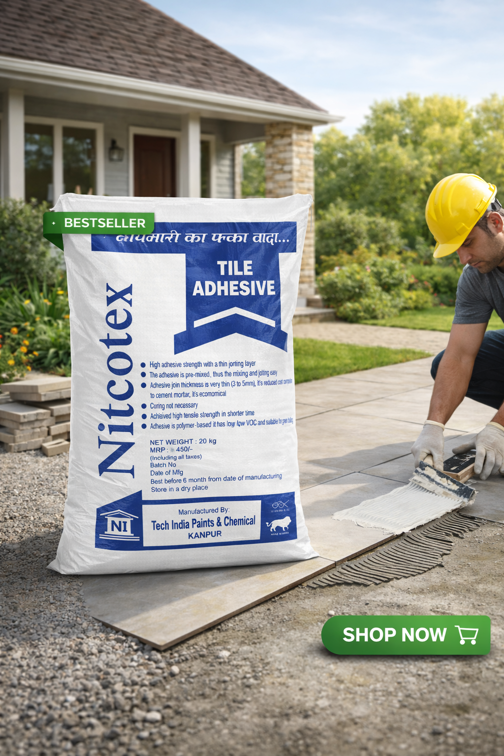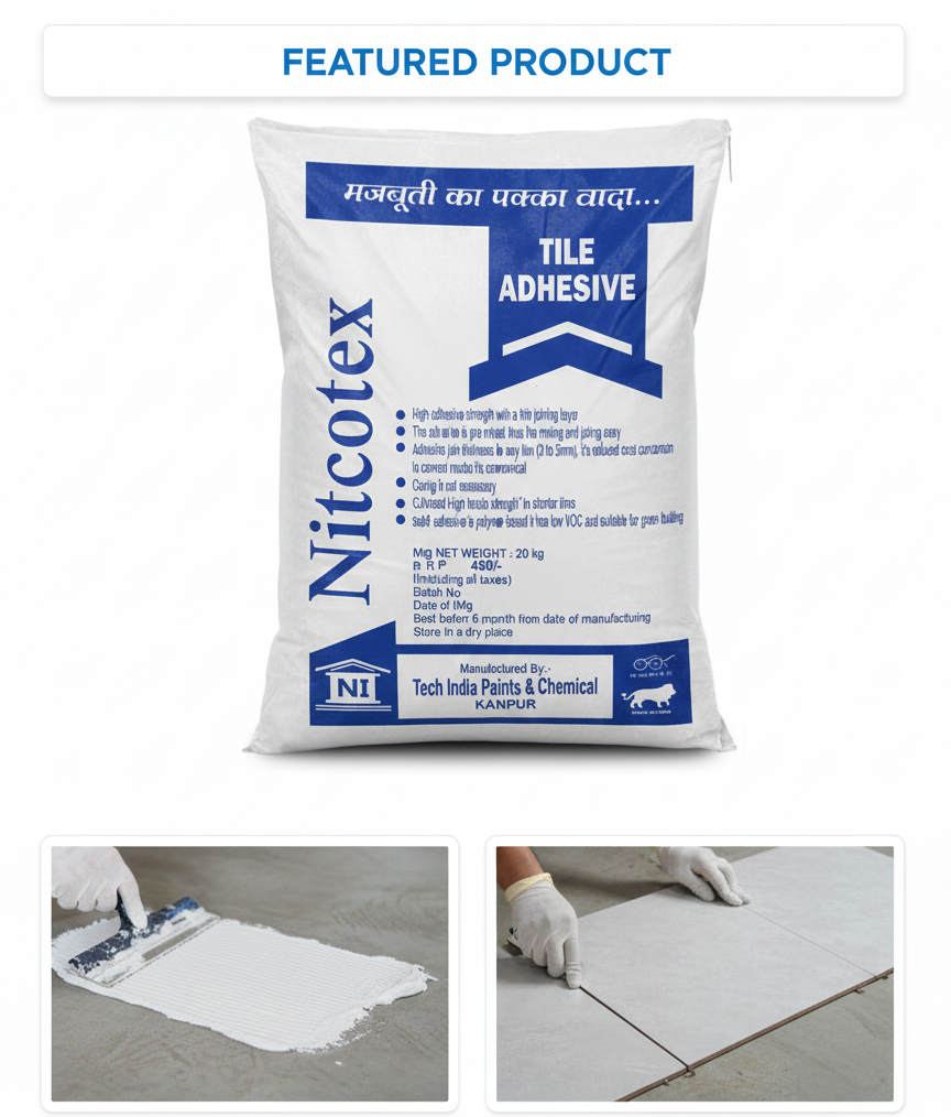 Niteotex Polymer Modified Tiles Adhesive is a high-quality, polymer-modified cement-based adhesive specially formulated for fixing all types of ceramic tiles, vitrified tiles, and stone tiles. It provides superior bonding strength and water resistance.